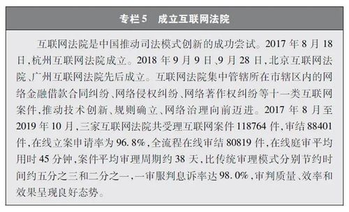 ——坚持创新引领。互联网因创新而生,因创新而兴,网络法治尤其需要创新。中国全面把握网络空间治理面临的前所未有的艰巨性、复杂性,前瞻性应对互联网新技术新应用新业态新模式带来的风险挑战,推进网络法治理念、内容、方式、方法等全方位创新。完善和创新算法、区块链等新技术新领域规则,努力填补重要领域制度的时间差、空白区,建立网络综合治理体系,创新网络司法模式,以创新引领网络法治实践,全面提升互联网治理效能。