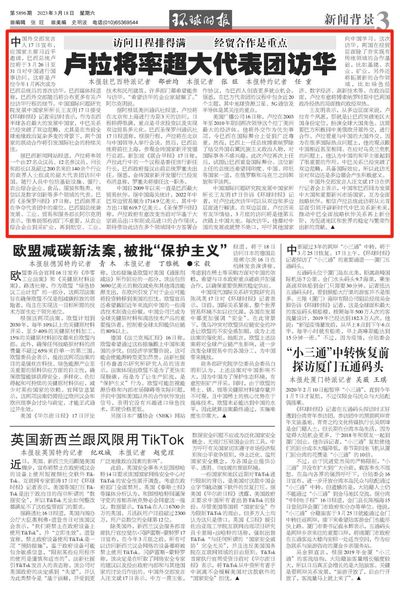 中国自2009年以来一直是巴西最大贸易伙伴。据中国海关统计,2022年中巴双边贸易额为1714.9亿美元,其中中方出口额619.7亿美元。《圣保罗州报》称,卢拉政府有意改变当前对华基于大宗商品出口和制成品进口的合作现状,期待借助此访在多个领域同中方签署合作协议,为巴西人创造更多就业机会。据悉,在巴方代表团的议程中包含近20个主题,其中地球资源卫星、5G通信及半导体是其关注的重点。