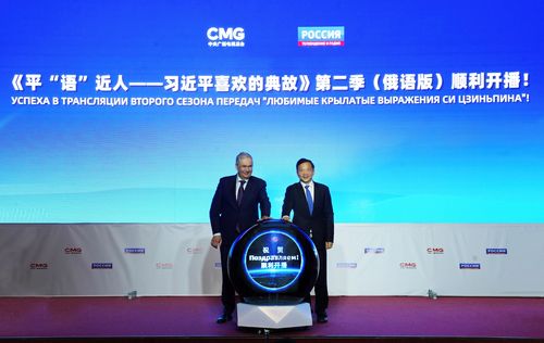 在中国国家主席习近平对俄罗斯进行国事访问之际,《平“语”近人——习近平喜欢的典故》第二季(俄语版)在俄罗斯各大主流电视台开播上线。3月20日,中宣部副部长、中央广播电视总台台长慎海雄,全俄国家电视广播公司总裁多布罗杰耶夫共同为节目启播并致辞。双方表示,将充分发挥主流媒体作用,响应全球文明倡议,促进中俄两国交流互鉴、民心相通,推动构建人类命运共同体。