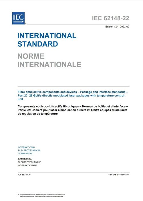 由中国电子技术标准化研究院联合中国信科集团制定的《光纤有源元件和器件-封装和接口标准 第22部分:带温度控制单元的25Gb/s直接调制激光器封装》(简称《标准》),日前由世界三大标准组织之一的国际电工委员会(IEC)正式发布。该标准的发布也是光通信有源器件领域第一项由我国主导制定的IEC国际标准。