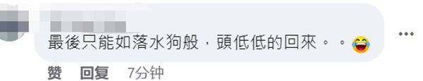 对此,有岛内网友讽刺道:最后只能如落水狗般,头低低的回来。↓