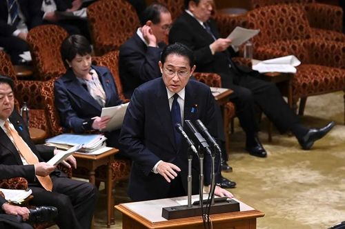 当地时间2023年3月27日,日本东京,日本首相岸田文雄(中)在东京议会上院预算委员会会议上回答问题。图源:视觉中国