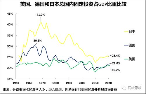 到1955年,西德固定投资占GDP比重为26.9%,美国则为21.9%;到1964年,德国固定投资占GDP比重更是达到30.0%。同年,日本固定投资占GDP比重为34.6%,美国则为22.7%。