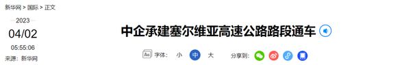 4月1日,由中国企业承建的塞尔维亚E763高速公路新贝尔格莱德—苏尔钦段举行通车仪式。塞总统武契奇出席仪式并致辞。图源:中国驻塞尔维亚大使馆