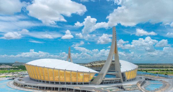 该体育场坐落在柬首都金边市郊,建筑风格融合柬埔寨“合十礼”、古代建筑屋脊等元素。据承建方介绍,体育场总建筑面积8万多平方米,能容纳约6万名观众。