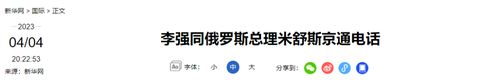 新华社北京4月4日电 国务院总理李强4月4日下午同俄罗斯总理米舒斯京通电话。