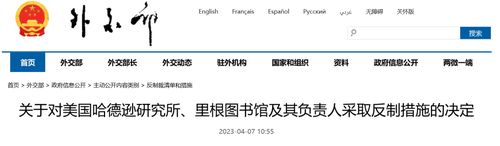现公布《关于对美国哈德逊研究所、里根图书馆及其负责人采取反制措施的决定》,自2023年4月7日起施行。
