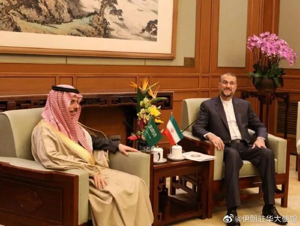 综合沙特通讯社(SPA)、伊通社(IRNA)消息,4月6日,沙特外交大臣费萨尔与伊朗外长阿卜杜拉希扬在北京会面,讨论两国重启外交关系需要采取的步骤。
