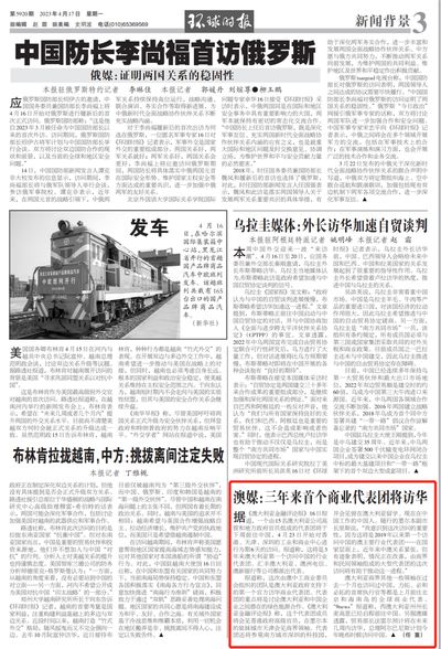 澳媒:三年来澳大利亚首个商业代表团将访华,多家澳企派出代表据《澳大利亚金融评论报》16日报道,……