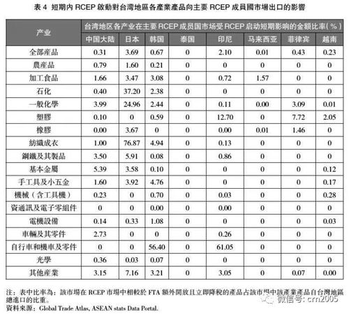 (三)RCEP启动生效对台湾地区相关产业发展造成的冲击和转移效应