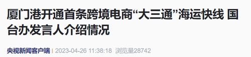 厦门港开通首条跨境电商“大三通”海运快线,国台办发言人介绍情况