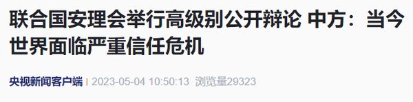 中方在联合国批评:某些国家在国际关系中出尔反尔、言而无信当地时间5月3日,联合国安理会举行“建设和平与持久和平”高级别公开辩论会。……