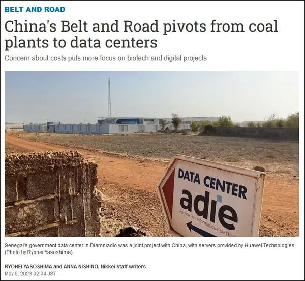 “中国‘一带一路’从煤厂转向数据中心”,《日本经济新闻》6日援引市场数据称,与“一带一路”相关的海外投资中,大型基础设施项目正在减少,针对数字信息、生物技术等前沿领域的“软投资”开始增加。