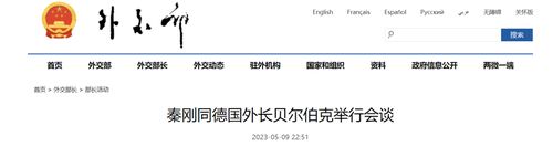 据外交部网站,当地时间5月9日,国务委员兼外长秦刚在柏林同德国外长贝尔伯克举行会谈。