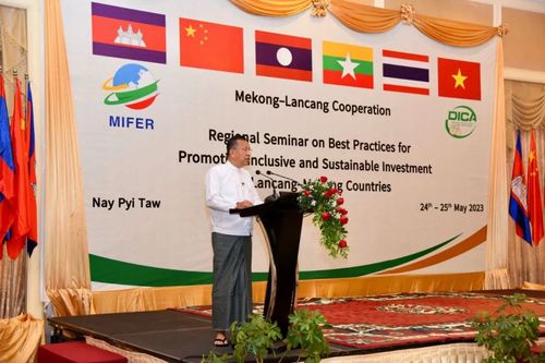 5月24至25日,由澜湄合作专项基金支持、缅甸投资与对外经济关系部主办的“澜湄国家促进包容性和可持续投资的最佳实践”区域研讨会在内比都以线下线上方式举行。中国驻缅甸大使陈海、缅甸投资部部长坎佐、缅甸澜湄合作国家协调机构主席玛拉丹泰及来自澜湄国家的投资促进机构负责人出席开幕式并致辞。缅投资部副部长瓦瓦貌、中国大使馆经济商务处谭书富参赞、欧阳道冰参赞等在座。