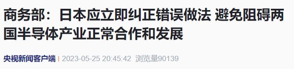 在今天(25日)举行的商务部例行发布会上,就日本政府于5月23日出台针对23种半导体制造设备的出口管制措施,商务部新闻发言人束珏婷表示,日方应从维护国际经贸规则和中日经贸合作出发,立即纠正错误做法。