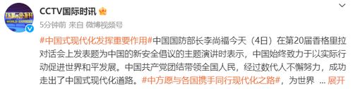 李尚福在香格里拉对话会上发表演讲:中方愿与各国携手同行现代化之路