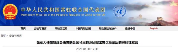 张军大使在安理会表决联合国马里特派团撤出决议草案后的解释性发言