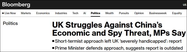 英国议会情报与安全委员会宣称:“如果不迅速果断地采取行动,我们将走上噩梦般的道路,即中国窃取目标蓝图、制定标准、制造产品,并在每一步施加政治和经济影响力。”