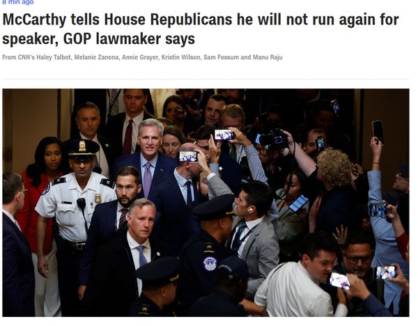 麦卡锡表示不会再次竞选议长相关报道(截图自美媒)