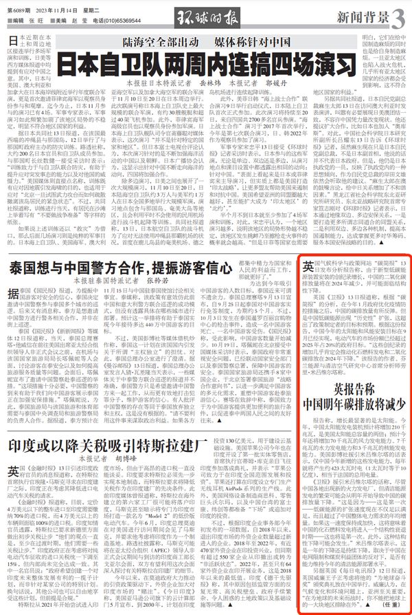 英国《卫报》13日报道称,根据“碳简报”的分析,在今年1月政府优化疫情防控措施之后,中国的碳排放量有所反弹。但是中国低碳能源出现“历史性”扩张,这超出了政策制定者的目标和预期。根据这份报告,中国今年的太阳能和风能安装目标在9月已经实现,电动汽车的市场份额已经超过2025年占20%的政府目标。“这些创纪录的增加几乎肯定会推动化石燃料发电和二氧化碳排放在2024年下降。”该报告的作者、芬兰能源与清洁空气研究中心首席分析师劳里·米吕维尔塔称。