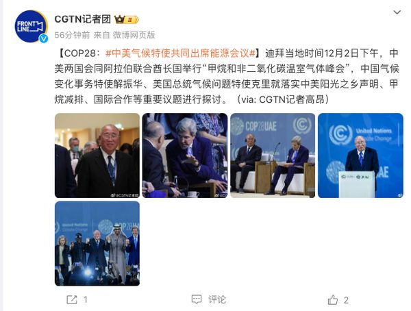 COP28:中美气候特使共同出席“甲烷和非二氧化碳温室气体峰会”迪拜当地时间12月2日下午,中美两国会同阿拉伯联合酋长国举行“甲烷和非二氧化碳温室气体峰会”,……