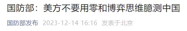 张晓刚:美方有关言论罔顾事实、颠倒黑白,我们坚决反对。中国坚持走和平发展道路,奉行防御性国防政策,发展军力旨在捍卫国家主权、安全、发展利益,维护世界和地区和平稳定。我们敦促美方不要以己度人,用自身走过的称霸道路镜像中国,用零和博弈的思维臆测中国。美方需要做的是切实采取客观理性态度,与中方相向而行,树立正确认知、有效管控分歧,以实际行动践行有关承诺,为推动两军关系重回正轨创造条件。