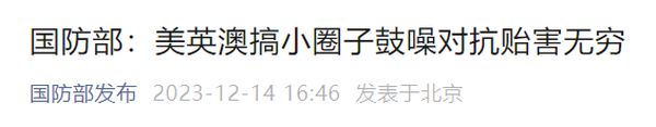 国防部:美英澳搞小圈子鼓噪对抗贻害无穷