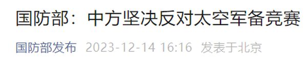 记者:据报道,第78届联合国大会高票通过中俄等国共提的“不首先在太空部署武器”决议草案,重申防止太空军备竞赛目标。请问发言人有何评论?