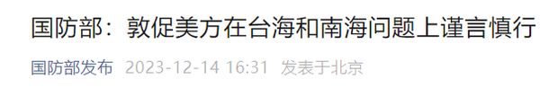 国防部:敦促美方在台海和南海问题上谨言慎行