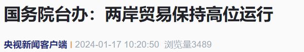发言人陈斌华表示,2023年,我们积极回应两岸同胞要和平、要发展、要交流、要合作的共同愿望,与台湾各界共同努力,在新冠疫情防控转段后,推动两岸经济交流合作克难前行、稳中有进,两岸经济交流合作、融合发展取得积极进展。