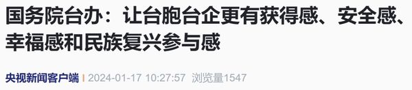 国务院台办:让台胞台企更有获得感、安全感、幸福感和民族复兴参与感