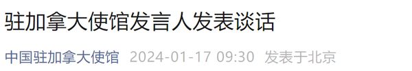 1月16日,加拿大联邦政府发布敏感技术研究和相关机构政策,包括一份敏感技术研究领域清单和一份含中国研究机构在内的研究机构清单。加方以莫须有的国家安全风险为借口,将正常科技交流合作政治化,破坏中加两国科技界的开放、信任与合作,中方对此强烈不满和坚决反对,已向加方提出严正交涉。