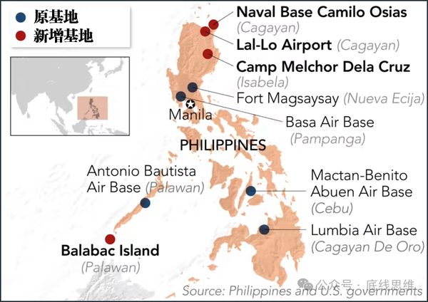 菲律宾原美军基地与去年新设美军基地对比图(图源:《日经亚洲》)