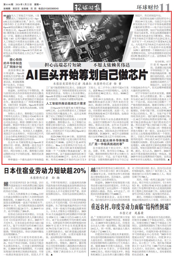 “担忧人工智能芯片短缺,(美国人工智能研究公司)OpenAI正在讨论解决方案。”21日,印度《铸币报》汇总多家外媒的报道称,OpenAI给出的解决方案是成立一家芯片制造公司,OpenAI首席执行官萨姆·奥特曼正在说服潜在投资者加入这一计划。随着企业和消费者对人工智能(AI)应用兴趣的日益浓厚,对人工智能芯片的需求也在强势上涨。然而,目前这些需求几乎都集中在业内顶尖的那一两家公司身上,相关芯片供不应求,这促使以OpenAI为代表的AI研发企业开始考虑走上自己生产AI芯片的道路。