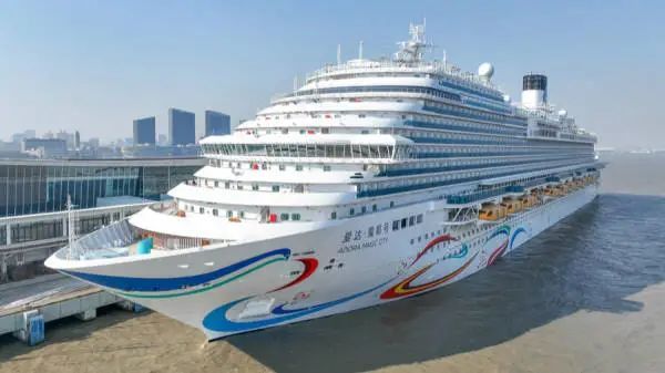 1月1日,首艘国产大邮轮“爱达·魔都号”从上海吴淞口国际邮轮港出发,正式开启商业首航。图自上观新闻