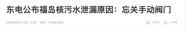 东电公布福岛核污水泄漏原因:忘关手动阀门据日本《每日新闻》报道,针对福岛第一核电站2月7日发生的核污水泄漏事故,……