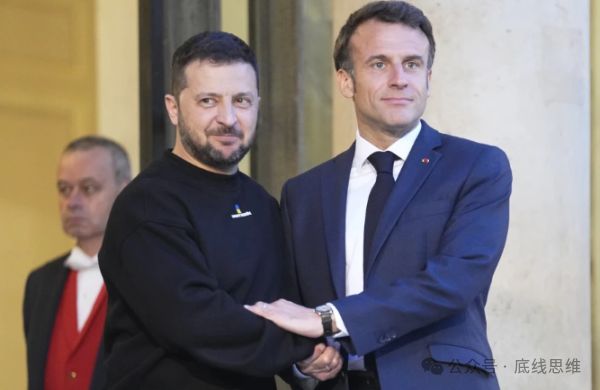 2024年2月16日,法国与乌克兰签署双边安全协议。图为2023年5月14日,马克龙欢迎泽连斯基到访法国。图/AP