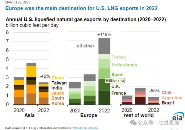 俄罗斯能源出口被制裁之后,美国的天然气向欧洲出口大增