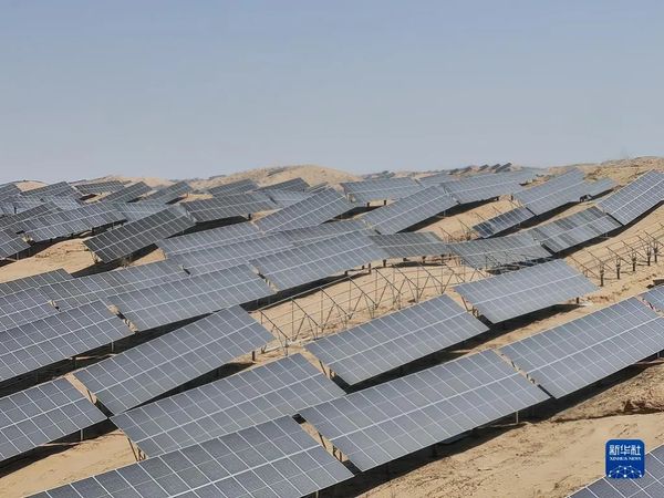 新疆乌鲁木齐市北部一处光伏电站。新华社记者 杜刚 摄