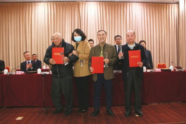 在致公党厦门市地方组织成立40周年纪念大会上,林劲立(前排右一)被表彰为“光荣在党40年”的老党员