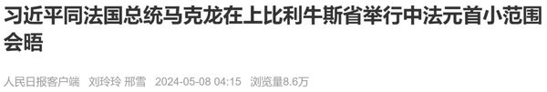 文章导读 当地时间5月7日,应法国总统马克龙特别邀请,国家主席习近平乘专机离巴黎赴法国西南部上比利牛斯省访问。……