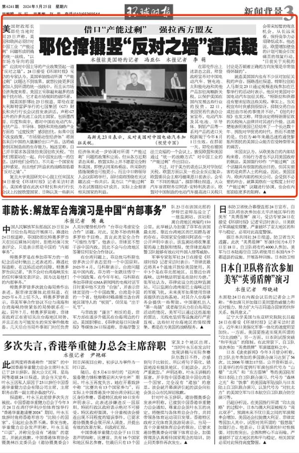 就连美国国内也有不少反对加征关税的声音。据路透社报道,特斯拉创始人马斯克23日通过视频连线参加在巴黎举行的活动时表示,他反对美国对中国电动汽车加征关税。“特斯拉和我都没有要求征收这些关税。事实上,当关税宣布时我感到很惊讶。抑制交易自由或扭曲市场的事情并不好。”《纽约时报》也发文称,拜登决定将特朗普征收的关税纳入法律并对其进行升级,这清楚地表明美国已经结束了一个长达数十年、拥抱对华贸易的时代。然而不清楚的是,仍在为40年来最迅速的通货膨胀所困扰的美国公众能否忍受转型带来的痛苦。