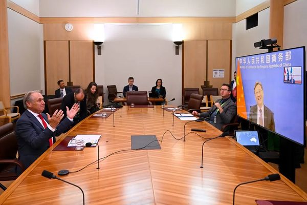 2月6日,商务部部长王文涛和澳贸易部长法瑞尔举行视频会议。