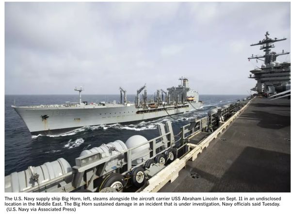 综合美国《海军时报》(Navy Times)、《华盛顿邮报》24日报道,美国海军在一份声明中说,在为“亚伯拉罕·林肯”号航母打击群提供了补给后,美国海军“大霍恩”号周一夜间因不明原因的紧急情况而遭受损坏。美国海军表示,所有船员都很安全,目前还不清楚是否有人受伤,事故仍在调查中。