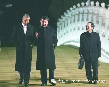 奥巴马是国事访问,按惯例在大会堂见面。可是,专门挤出一个晚上,两个人冒着寒风,边走边聊。