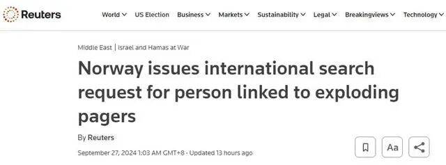 报道称,被问及搜寻该男子采取的措施,挪威警方称:“9月25日,奥斯陆警察局收到与寻呼机案件有关的一份失踪人员报告……我们已就失踪人员一事立案,已经针对此人发布了国际寻人请求。”
