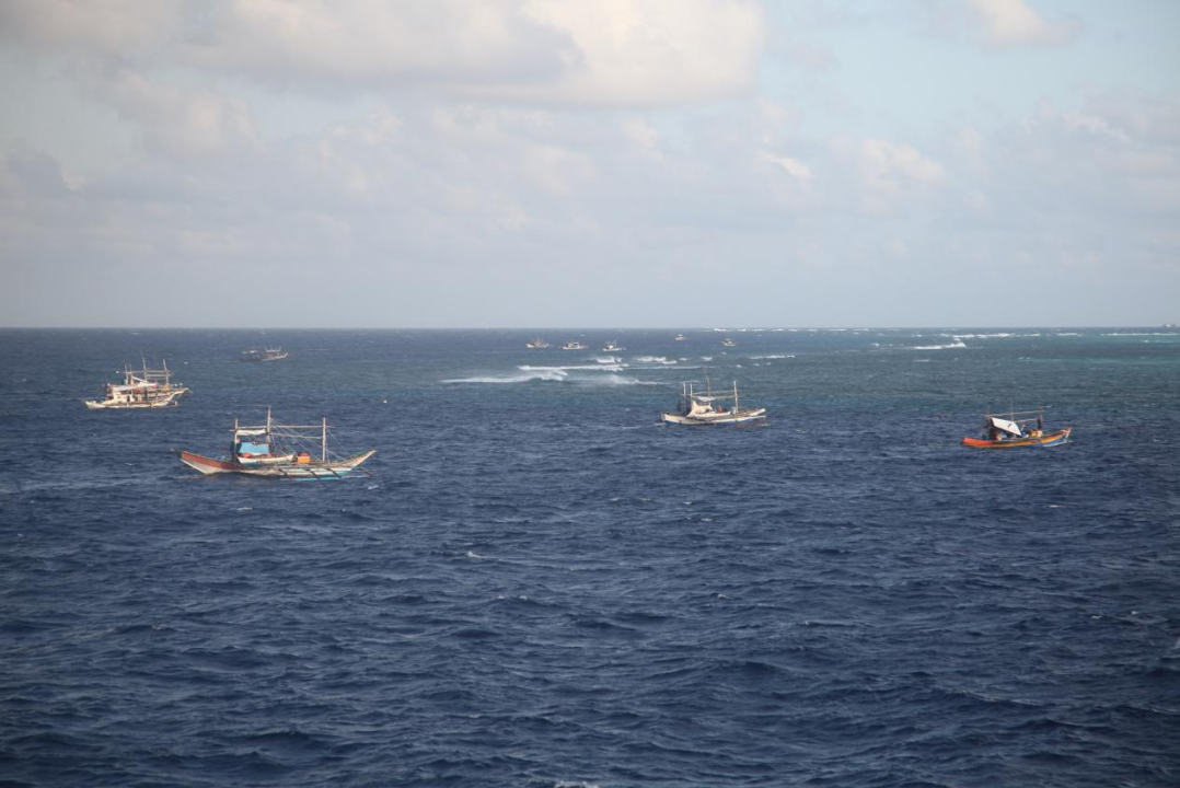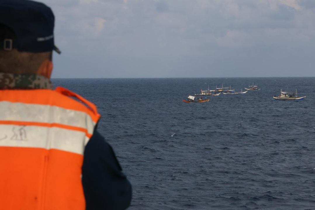 《环球时报》记者从参与现场执法的中国海警船只获取的图片显示,菲方渔船呈现“编队化”的特征。