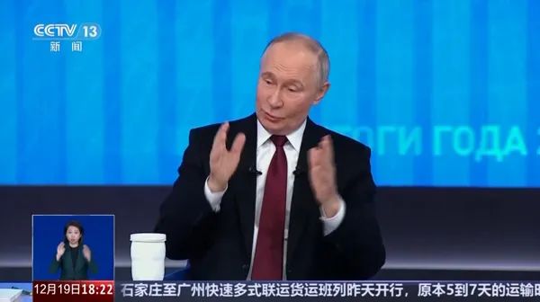 当地时间12月19日,俄罗斯总统普京在莫斯科举行年度记者会。