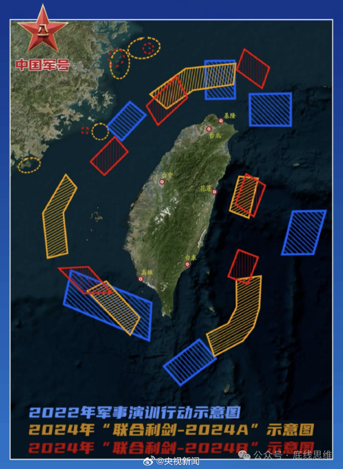 5月,赖清德就职,其“台独”演说显然是美方刻意的操作,意在试探中国大陆底线,此举促发了“联合利剑-2024A”围台军演,中国大陆不再唱软调。与上一次围台军演的主要差异是,这一次大陆海警加入了军演行列。